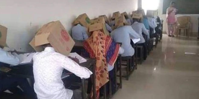 School students in the Indian state of Karnataka were this week forced to wear cardboard cartons on their heads during an exam, presumably in order to stop them from cheating in the test.