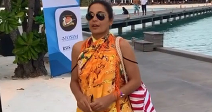 “I am here in the Maldives at the Paradise Island Resort, see,” she can be seen saying as she gestures towards the serene waters of the Indian Ocean.
