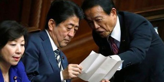 TOKYO: Japanese Prime Minister Shinzo Abe and his ally, Finance Minister Taro Aso, face mounting pressure over a suspected cronyism scandal as the finance ministry prepares to report on Monday that documents in the case were doctored.