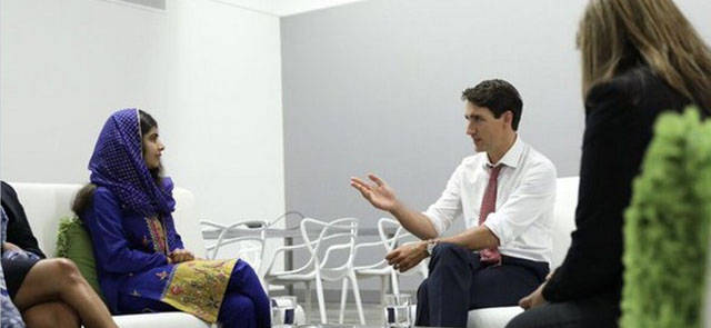 Canadian prime Minister Justin Trudeau, sharing a photograph on his tweeter handle regarding his meeting with the Pakistani activist for female education, said “Great to catch up with @Malala today in Ottawa.”