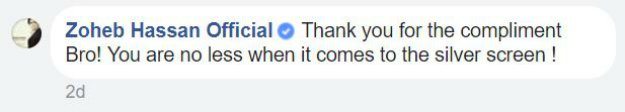 The two kept passing compliments to each other in a string of comments on the social media platform wherein Zoheb also lauded Fawad’s acting skills.