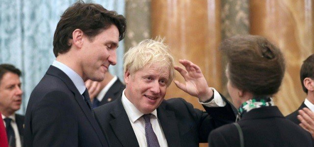 The footage, shot by the British host’s camera pool on Tuesday evening and spotted and subtitled by Canada’s CBC, set the tone for the allies’ summit in Watford, just outside London.